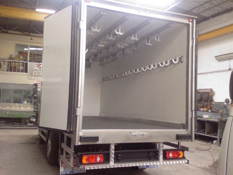 Kasa ölçüleri Uzunluk:5300mm,En:2150mm,Yükseklik(içten içe):200mm Araç şase üzerine 5mm kalınlığında sacdan z şeklinde büktürülerek imal edilecektir. Bunun üzerine 40X60 2 mm lik kutu ile araları 40cm olarak araç şasesine 8 adet u bağlantı ile bağlanacaktır. Kasa duvarları 60mm kalınlığında kutu profillerden imal edilip aralarına 60mm polüretan köpük döşenerek üzerine üstüne 2mm kalınlığında fiber ile vakumlanarak yapıştırılması. Kasa içerisine tavanda 4 sıra et asmayeri yanlarda 2 şer sıra et asma yerleri yapılacaktır. Araç kasa içi tabanı polyester yapılacak. Kasa soğukluğu -18 derece olacaktır. Araç kasa arka çerçevelerin 1.5mm kalınlığında krom sacdan imal edilmesi. Araç arka kapıları 6cm kalınlığında olup çift taraflı fiberden yapıştırılarak imal edilmesi. Kapı kollarının kronikel olarak imal edilmesi Arka kapılarda 2 adet sağda 2 adet solda olmak üzere krom menteşe ile monte edilmesi Araç kasa altında dört adet çamurluk ve iki sıra olmak üzere açılır bisikletlik yapılması.