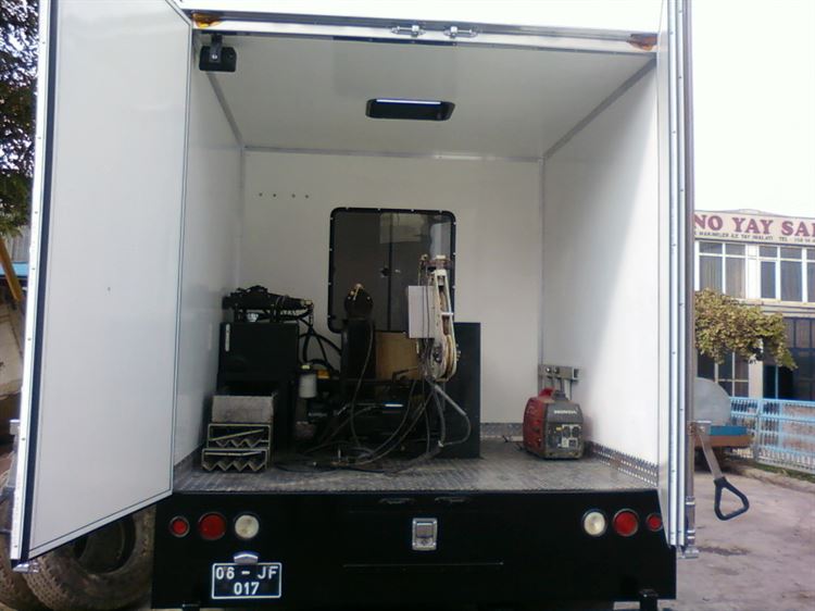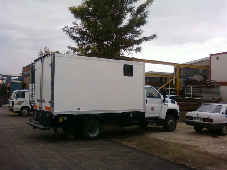 KASA ÖLÇÜLERİ : KASA ÖLÇÜLERİ BOYU 4.45 CM DIŞTAN ENİ 2.40 CM DIŞTAN YÜKSEKLİK 2.20 CM (+ 5 – 5 CM ) İÇTEN OLACAK ŞEKİLDE İMAL EDİLECEKTİR. KASA MALZEMELERİ: TABAN ANA YASTIKLARI 40X60 3 MM GALVANİZLİ PROFİLLERDEN 30CM ARA İLE DÖŞENECEKTİR, TABAN İÇİNE 18 MM PLEYMUT KONTRA İLE KAPLANACAKTIR. ÖN BÖLÜMÜ BÜRO TİPİ MUŞAMBA İLE ARKA BÖLÜMÜ İSE 2mm ÇETA ALÜMİNYUM SAÇ İLE KAPLANACAKTIR. KASA ARKA KÖŞELERİN DE HAZIR ELOKSALLI KÖŞE ALEMİNYUMLARI KULLANILACAKTIR. ÖN VE ÜST KÖŞELERİNE 11X11X3 MM ALEMİNYUM (L)KÖŞELERİ İLE KAPATILACAKTIR. YAN ÖN TAVAN DUVARLARI 40 MM FİRİGO TİPİ PANELLER OLACAK. PANELLER MONTAJI YAPILIR KEN BİRBİRLERİNE KAYNATILACAKTIR.KASANIN SAĞ YANINDA 1 ADET TAKIM SANDIĞI YAPILACAKTIR.(YAPIM AŞAMASINDA ÖLÇÜLENDİRİLECEKTİR.) KASANIN SOL YANINA BİR ADET KAPI YAPILACAKTIR. ARKA ÇİFT KAPI TAM AÇILIR OLACAKTIR. KAPILAR İKİ ADET SAĞ DA İKİ ADET SOLDA OLMAK ÜZERE DÖRT ADET MENTEŞE İLE MONTAJI YAPILACAKTIR. KASA ETEKLERİ ALÜMİNYUM BİSİKLETLİK OLACAK AYAKLARI AÇILIR OLACAKTIR. KASA İÇİ YAN DUVARLAR 2 MM BEYAZ JELKOTLU FİBER İLE DONATILACAKTIR. KASA İÇİ ARA BÖLMESİ 30 MM OLUP İÇİ DIŞI FİBER ARASINA SIKMA POLÜRETAN KÖPÜK İLE PRESLENEREK İMAL EDİLECEKTİR,YAPILAN BÖLMENİN ORTASIN DA SÜRGÜLÜ 1 ADET CAM OLACAKTIR. KASA TAVANINA İKİ ADET CAM HAVALANDIRMA YAPILACAKTIR. İÇ AYDINLATMASI İÇİN TAVAN LAMBASI KOYULACAKTIR. KASA ARKA KÖŞELERİNE PARK LAMBASI TAKILACAKTIR.