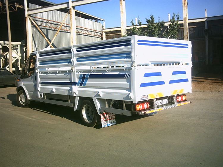 ARAC MODELI: FORD TRANSİT 350 KASA OLCULERI: BOY: 4.10 CM x EN: 2.10 CM x KAPAK YÜKSEKLIĞİ: 7.00 CM TABAN: Ana şasiler 40X60X2 MM Kutu profilden olacak taban scı 2,5 mm Galvanizli sac olacaktır. YAN KAPAKLAR: 40X40 2 mm kutu Profil çerçeve içi 1,20 mm. Dkp sac olacaktır pres ile şekillendirilip monte edilir. ON GÖĞÜS: Bükümlü saç çerçeve içi 1,20 mm. Dkp sac olacaktır pres ile şekillendirilip monte edilir. Ana dikmeler (baba direkleri) 50x50x2,5 mm kutu profilden yapılacaktır. ARKA KAPAK: 40x40 2 mm kutu profil çerçeve içi 1,20 mm. Dkp sac olacaktır pres ile şekillendirilip monte edilir. KİLİTLER: Kapak kilitleri dorse tipi kilitler olacaktır. MONTAJ: Karoserin sasiye montaji, arac sasisi uzerine (U) bağlantılar ile bağlanacaktır. BOYA: Kasa boya oncesi tum yuzeyler solvent ile temizlenip 2 kat sac ve aleminyum astar uzeri 2 son kat boya uygulamasi yapilmaktadir. AKSESUAR: Tekerlek on ve arkasinda 1x4 =4 adet saç camurluk olacaktir. Camurluklar uzerinde toz paspasi bulunacaktir. Arka kapak uzerinde Ecr 70 stnd 2 adet reflektor bulunacaktir. Kaucuk kapi takozlari yan etekler uzerine monte edilecektir.